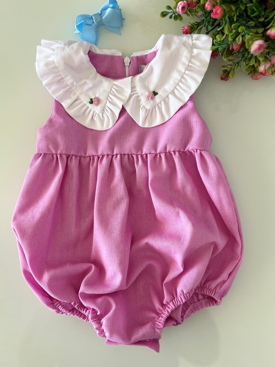 Romper Infantil com gola bordada a mão